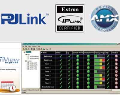 具有RJ-45接口和RS232接口,可支持多種網(wǎng)絡控制協(xié)議(Crestron/Extron/PJLink/AMX/TeInet)用戶可根據(jù)應用環(huán)境的需求,搭配不同的控制設備進行遠程控制和集中管理。